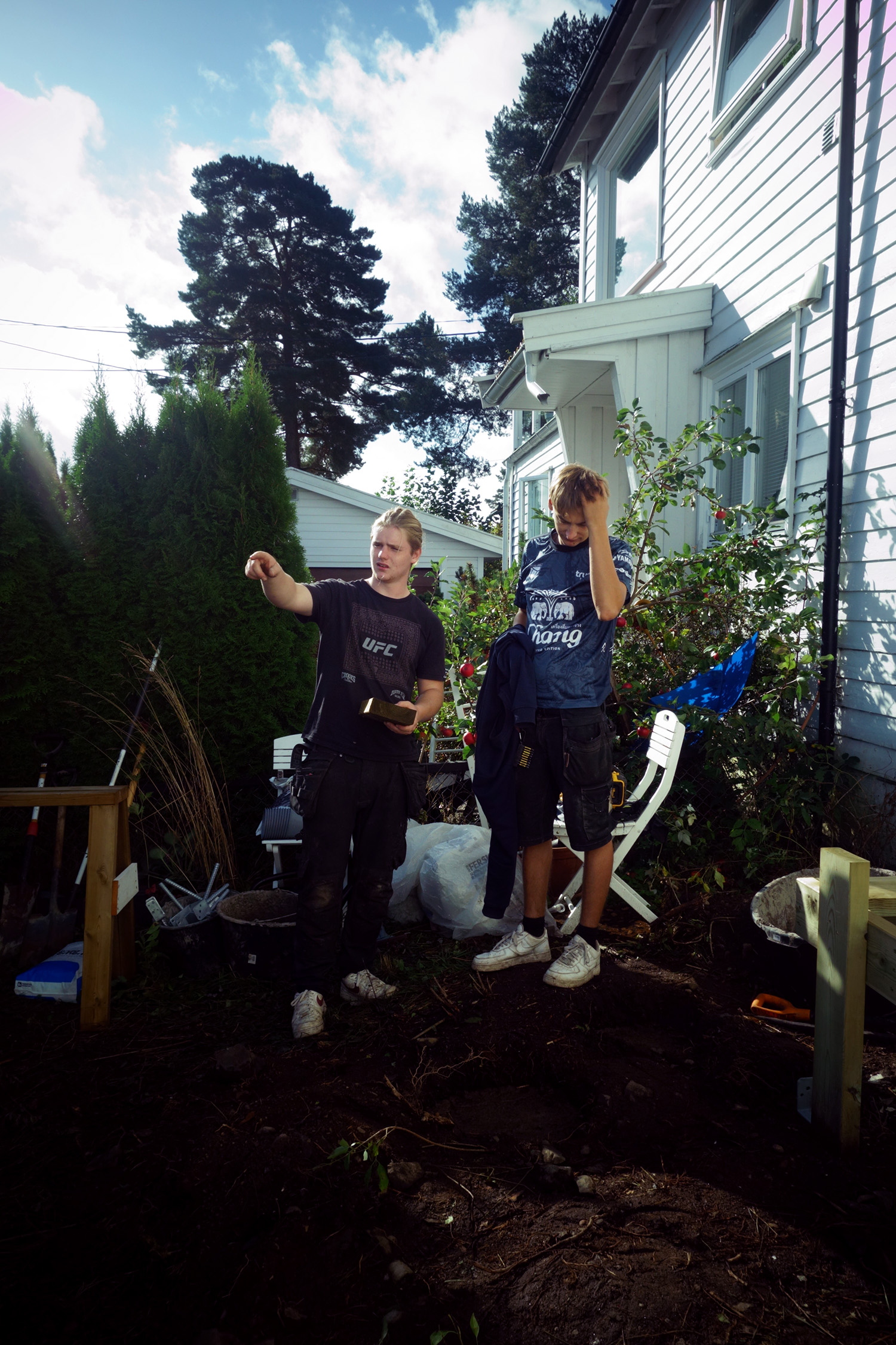 Dagen etterpå har de kommet langt med snekringen. I dag har Nils med seg en ny ansatt, David (21). David har jobbet hos Nils i et par uker, og Nils forteller at de møttes på en bar tidligere i sommer: