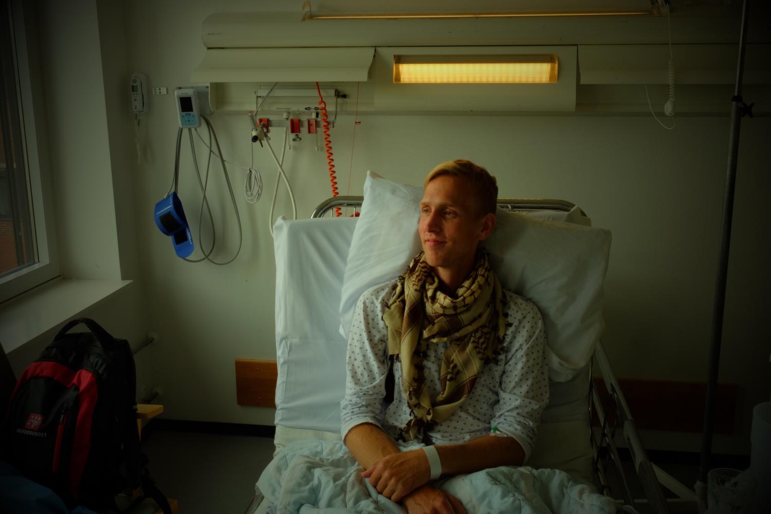 Inne på Diakonhjemmet sykehus ligger Vebjørn på et enkeltrom med utsikt over et mosegrønt tak. Her skal han bli i tre dager. Kroppen er i god form etter den langvarige fasten, men svimmelheten kommer når han reiser seg.