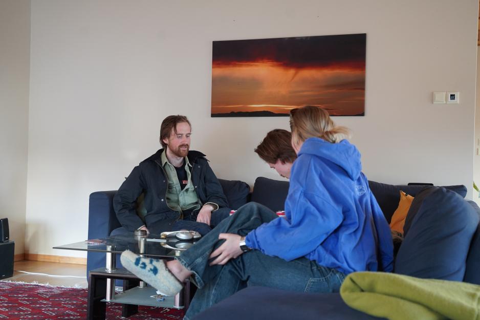 I den store stua sitter det et par kompiser å ser på fotball med hver sin tilhørende pils. En av de har en rutete skjorte som ville gjort Sven Nordin i rollen som Nils, stolt. Det manglet kun noen seigmenn som lå slengt på bordet. Ved det lange spisebordet satt en skjeggete skikkelse å leste avisen på telefonen.