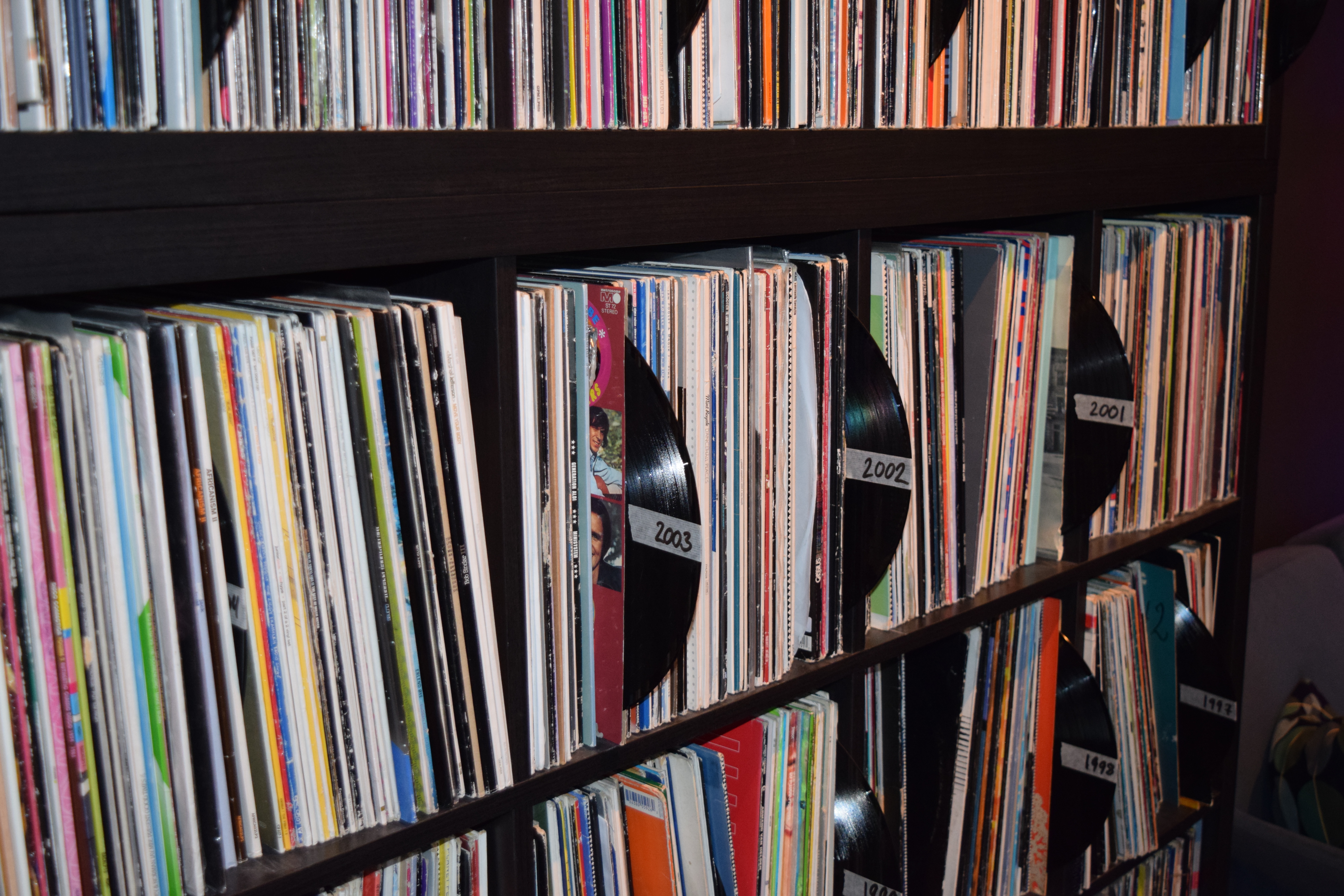 Han sitter i stolen hvor han har benyttet mye av tiden sin. Det kvadratiske rommet inneholder flust av instrumenter, mikrofoner og et par svære PC-skjermer. Veggene prydes blant annet av en gitar som skinner ekstra under det lilla taklyset. Flere hundre LP-plater er stablet kategorisk i en stor hylle.