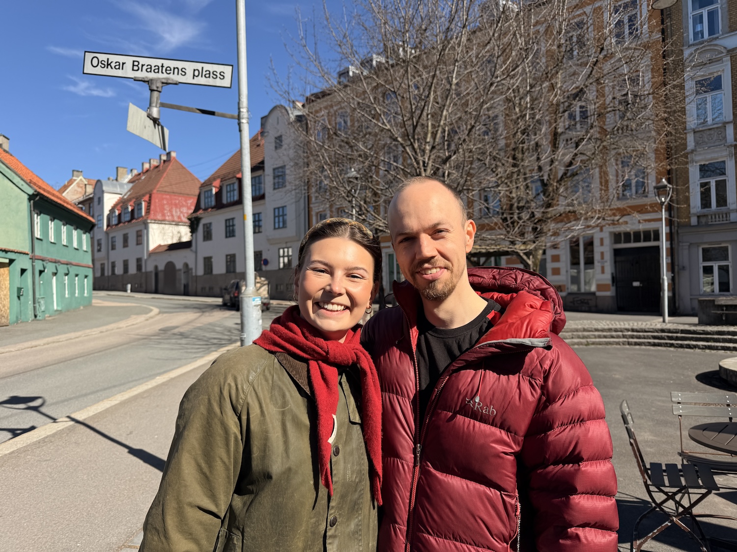 Tilbake på Torshov drar Aslak Maurstad frem videoen på YouTube. Hedda ler så hun nesten forsvinner bak det røde skjerfet.