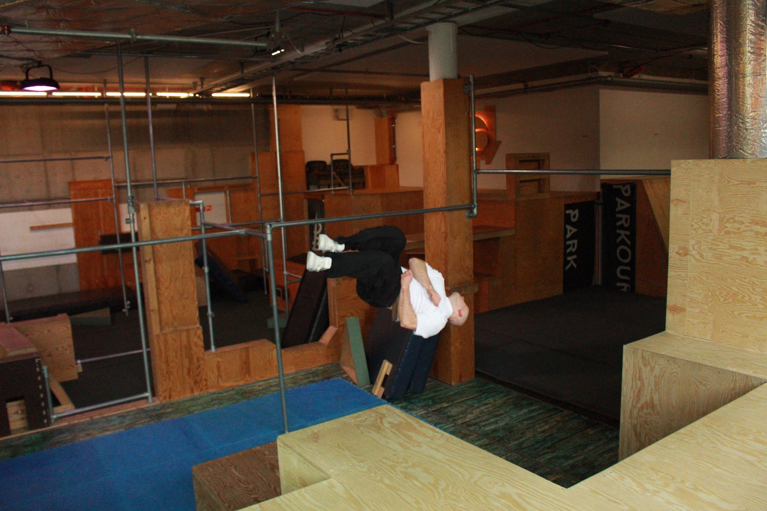 – Jeg trener fem dager i uka med både styrke, kondisjon og parkour. Når jeg er i parkourhallen er jeg her i tre timer for å finpusse triksene mine.