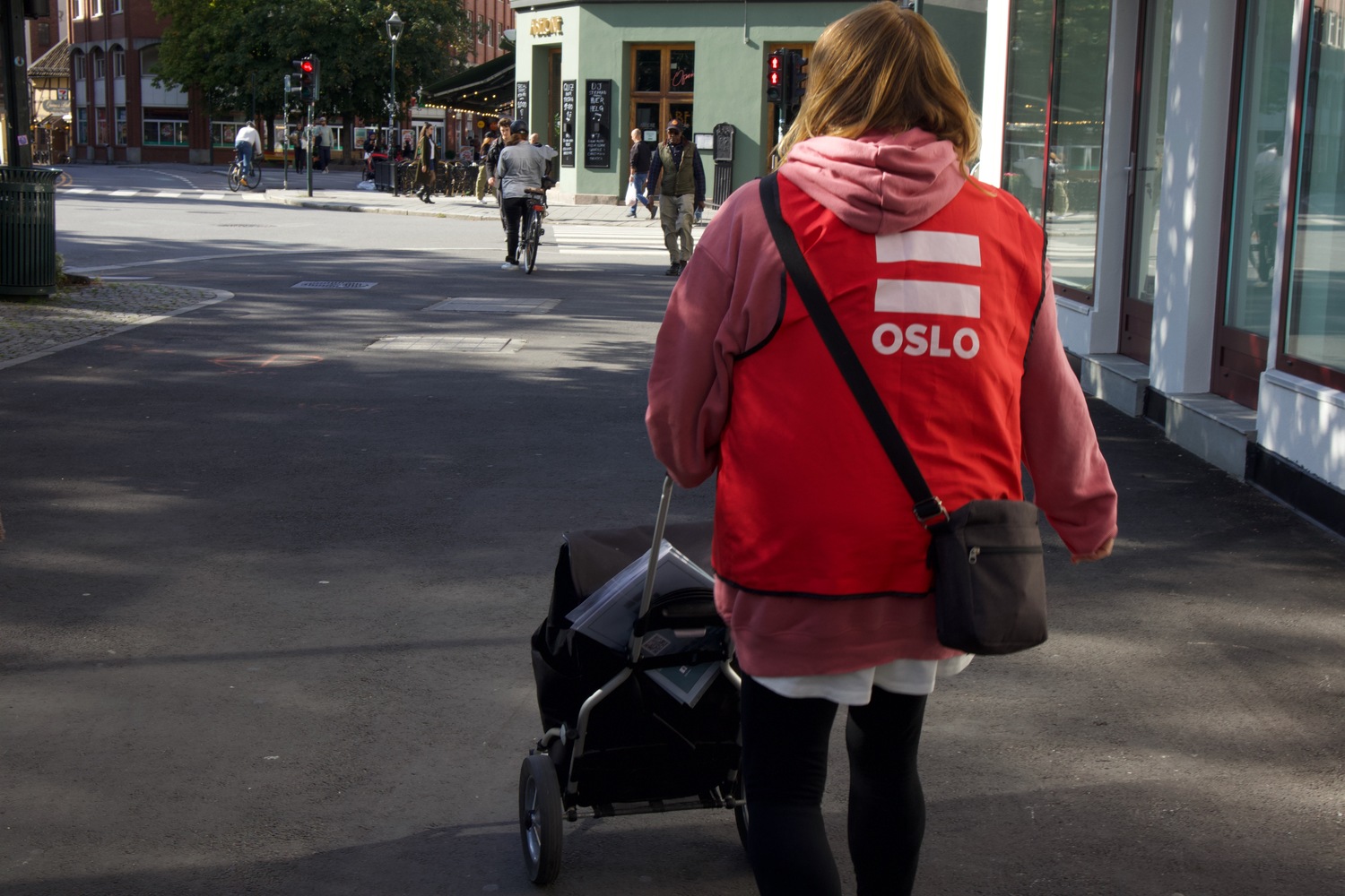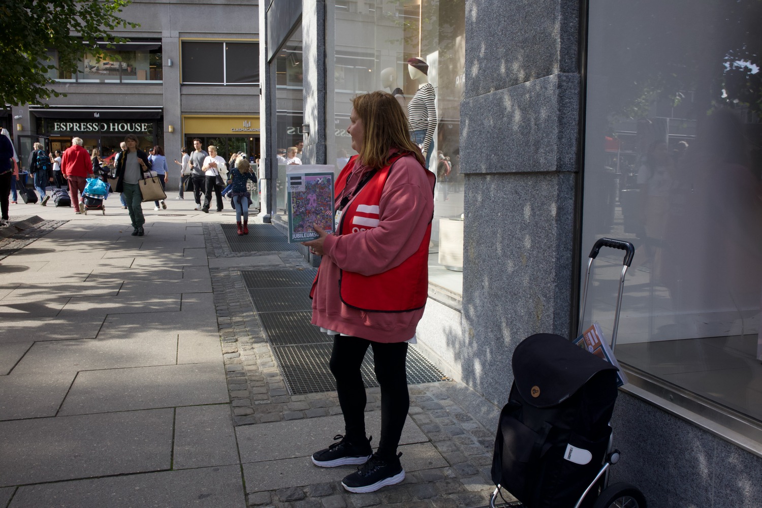 Med rød vest og et magasin i hånden har de prydet gatene i 20 år. Dette er en historie om å arbeide på ett av Oslos gatehjørner.