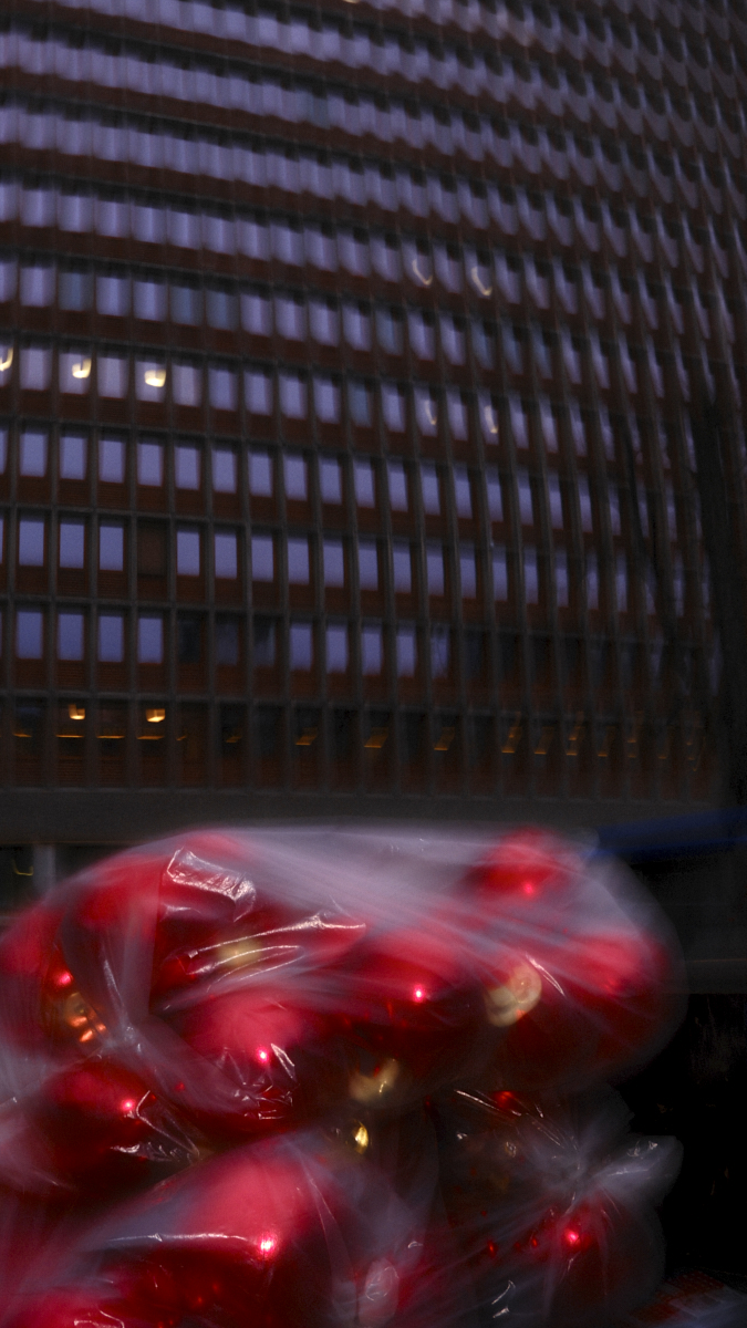 Juletider: Det er snart desember, og på regjeringskvartal-plassen blir det markert med julekuler. Foto: Jesper Solomon