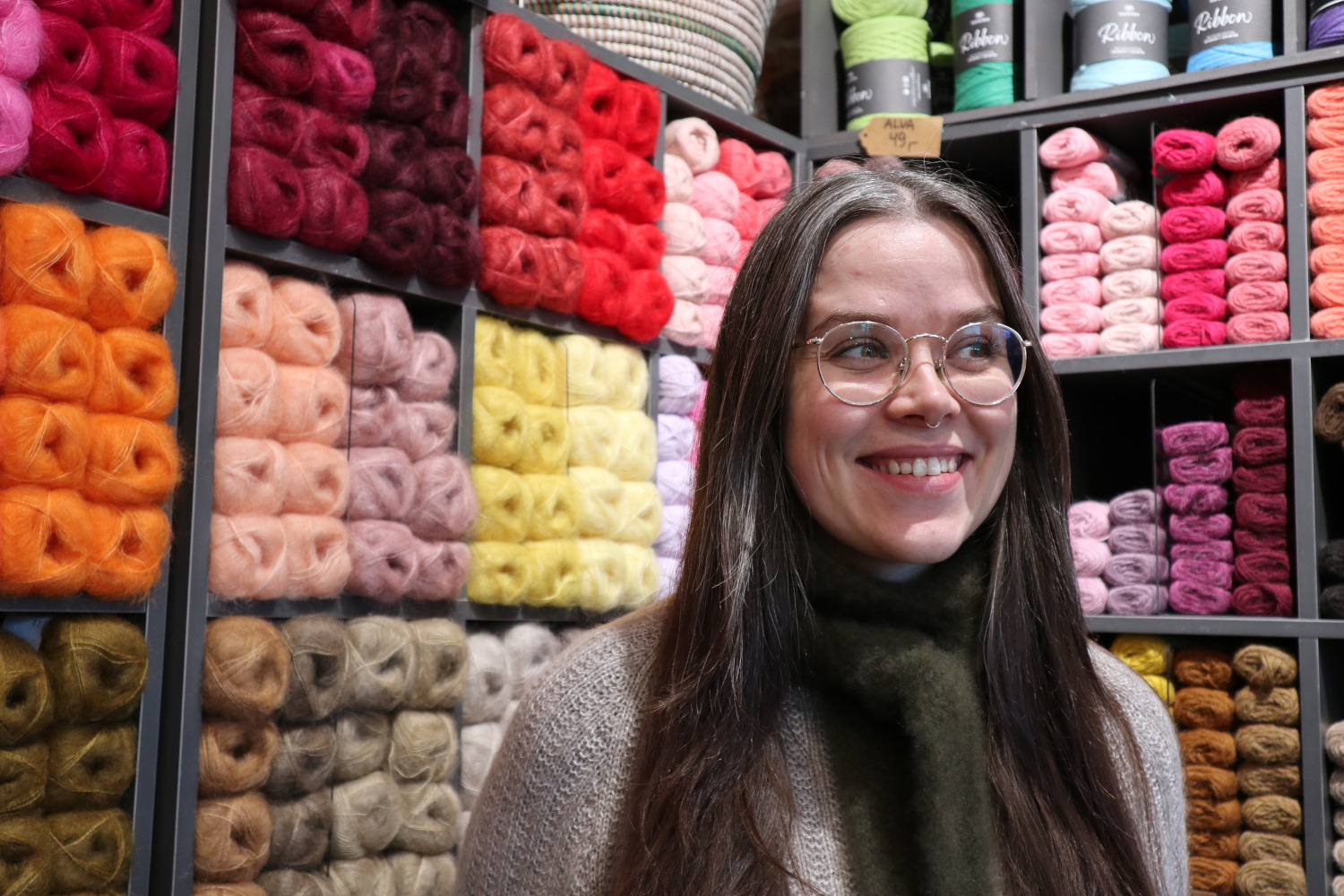 - Assisterende butikksjef på Fru Kvist Grünerløkka opplever at flere og flere unge begynner å strikke. Hun tror det er en effekt av koronapandemien.