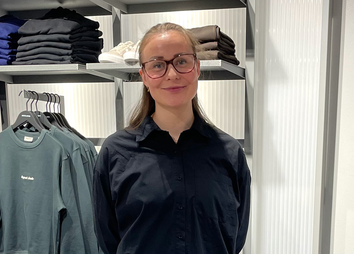 Mina har jobbet i Jack & Jones i 3 år. Foreløpig er det rolig men etter erfaring så pleier det å endre seg raskt i slutten av november og i desember.