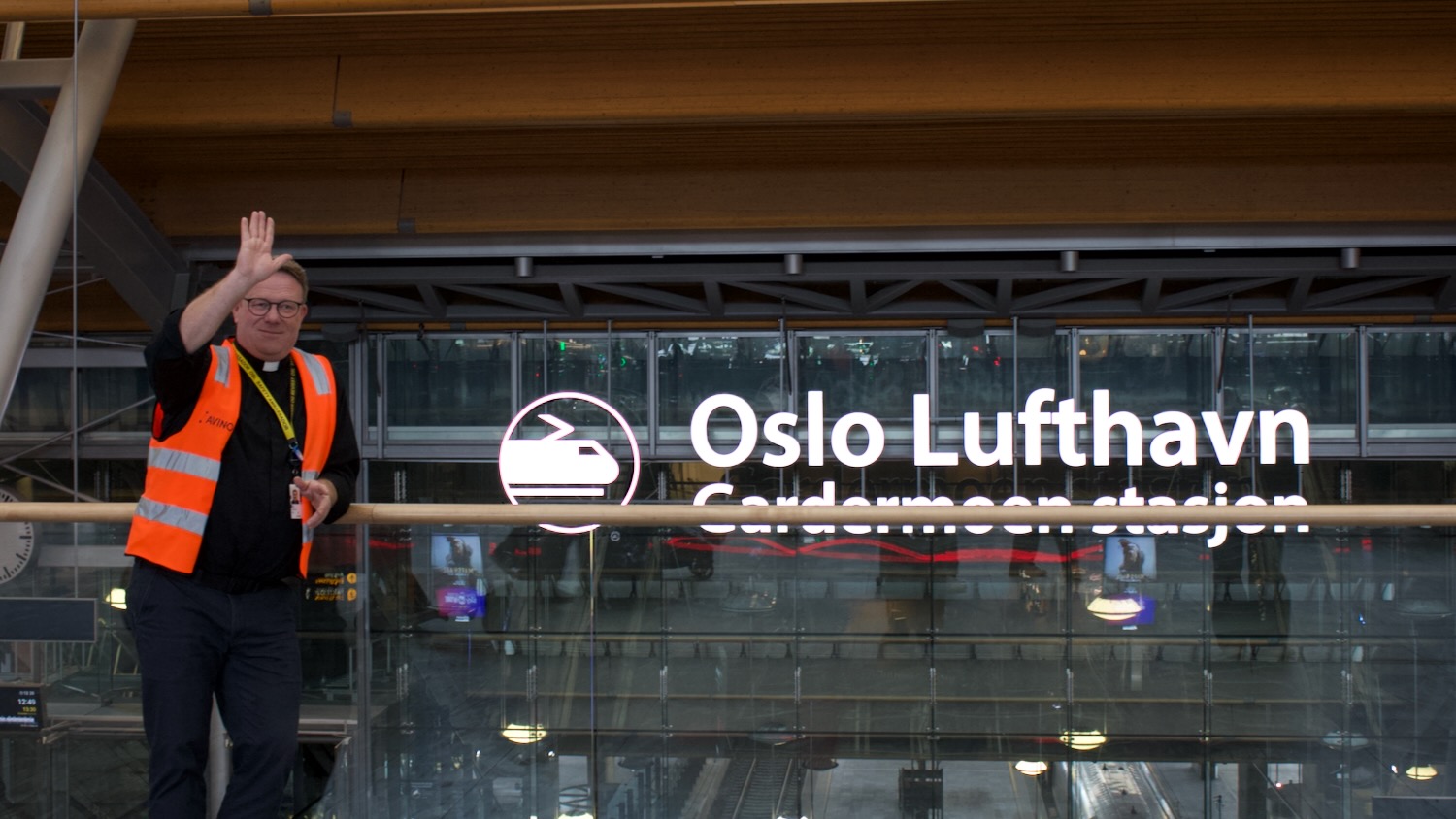 Mannen er Torbjørn Olsen. Han er prest på Oslo lufthavn Gardermoen og Norges eneste lufthavnprest. Å vise travle forretningsmenn veien, er bare en av hans mange arbeidsoppgaver.